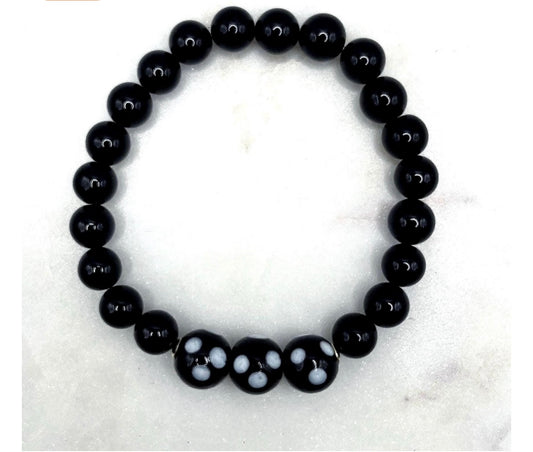 Tibetan Dzi Ágate Conta di Ojo Stretch Bracelet