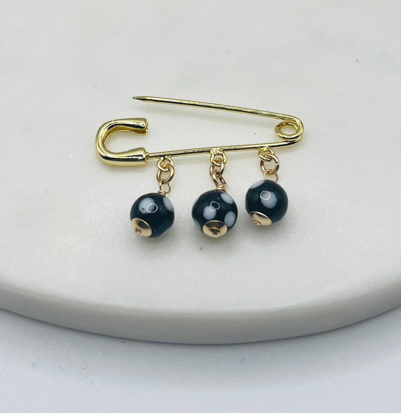 Gold Filled Charms Brooch Safety Pin / Stroller Pin / Scarf Pin / Evil Eve Protection Clothing Pin