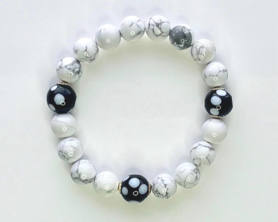 3, 12-13mm Conta di Ojo Beads + 10mm White Howlite Beaded Stretch Bracelet