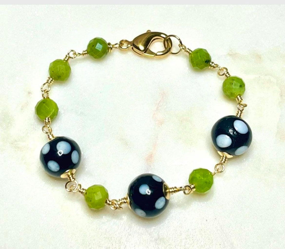 Gold Filled or .925 Sterling Silver Wired Conta di Ojo and Gemstones Bracelets
