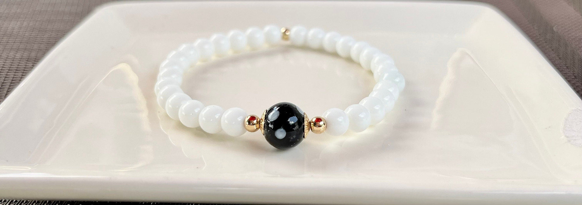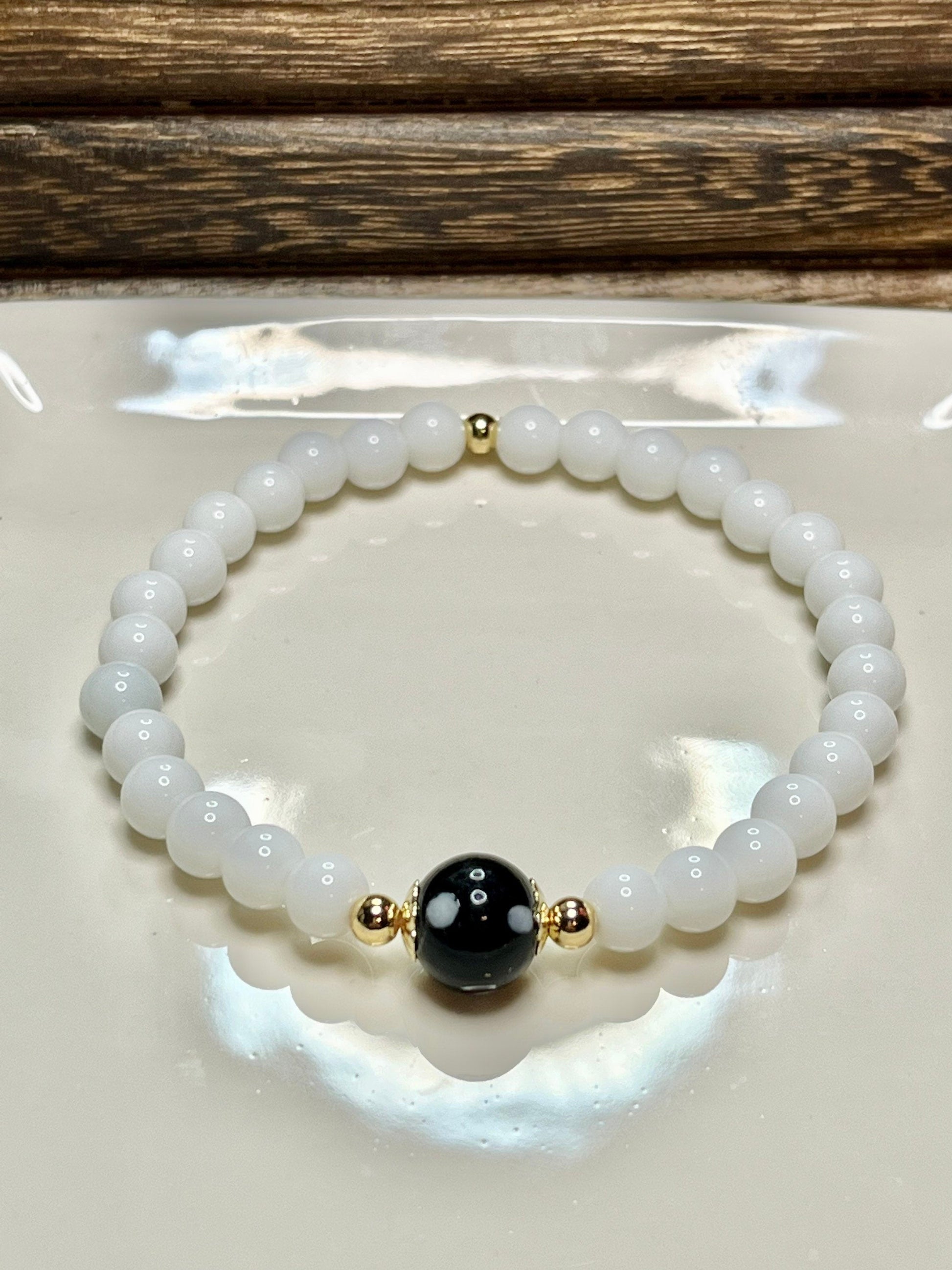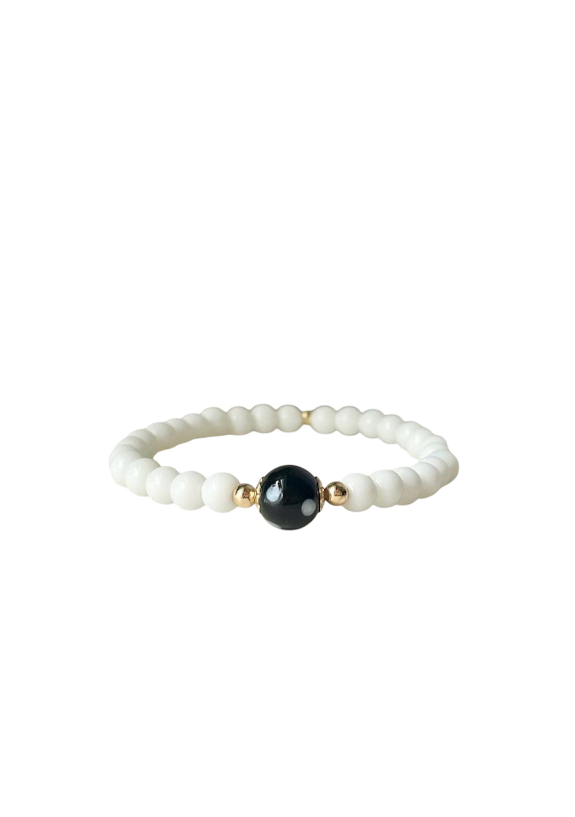 White Tridacna Shell Conta di Ojo Stretch Bracelets